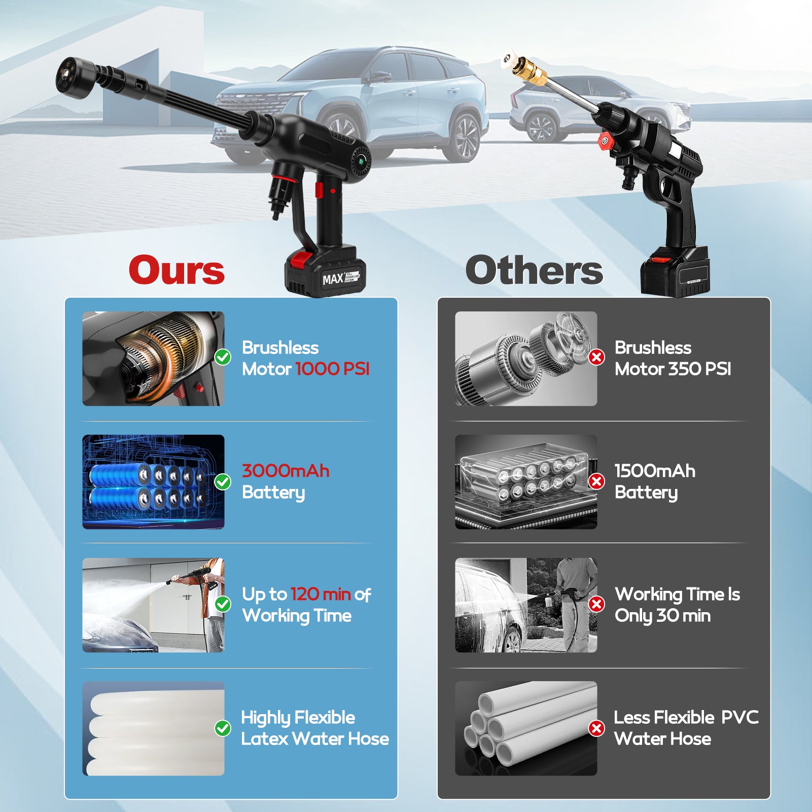- Brushless Motor: This cordless car washer is equipped with a brushless copper motor, making it highly effective at tackling even the most stubborn dust and grime with ease.