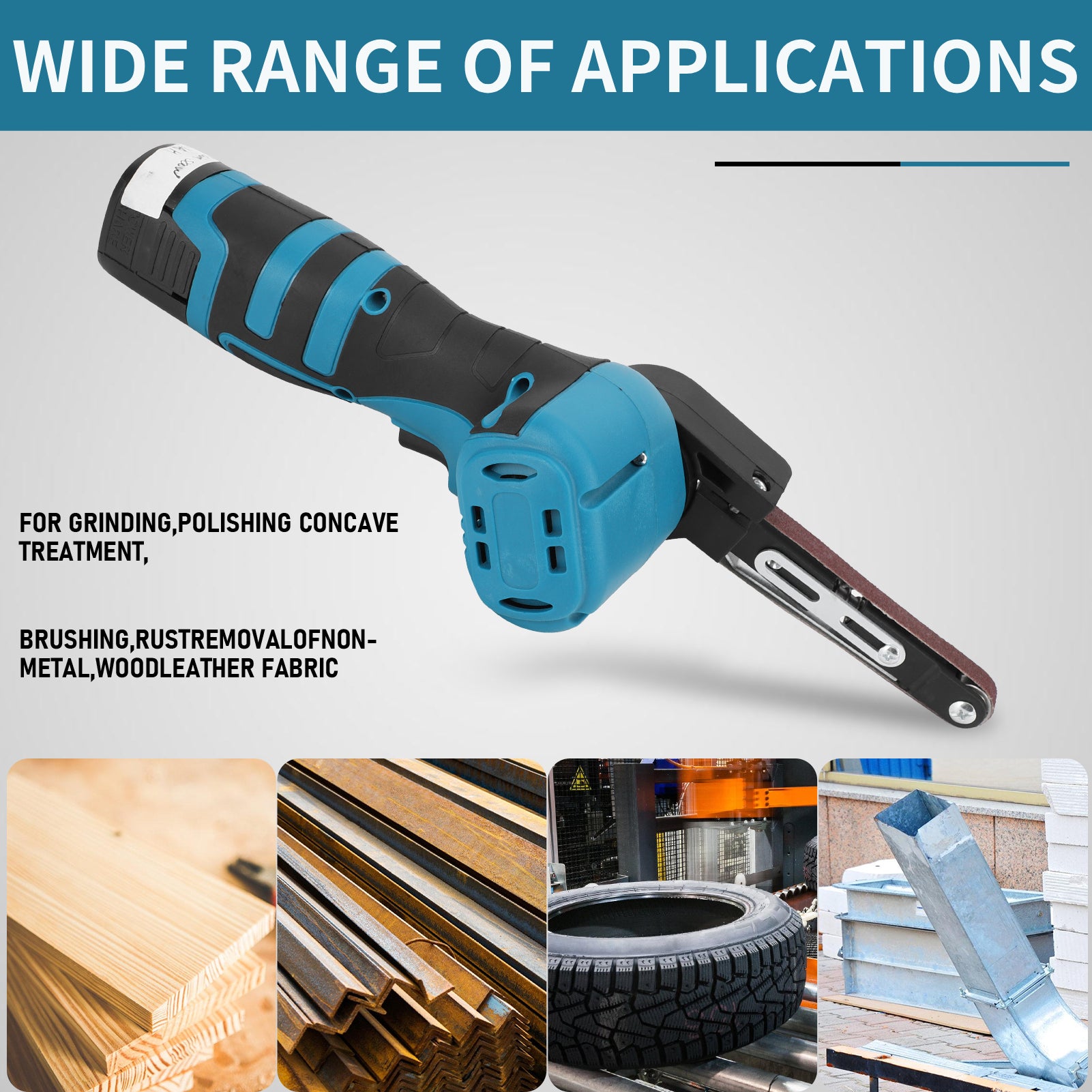 This handheld belt sander is perfectly for various tasks, including drilling metal parts, shaping wood, smoothing curves, and sharpening blades, making it an essential tool for diy enthusiasts and professionals alike.