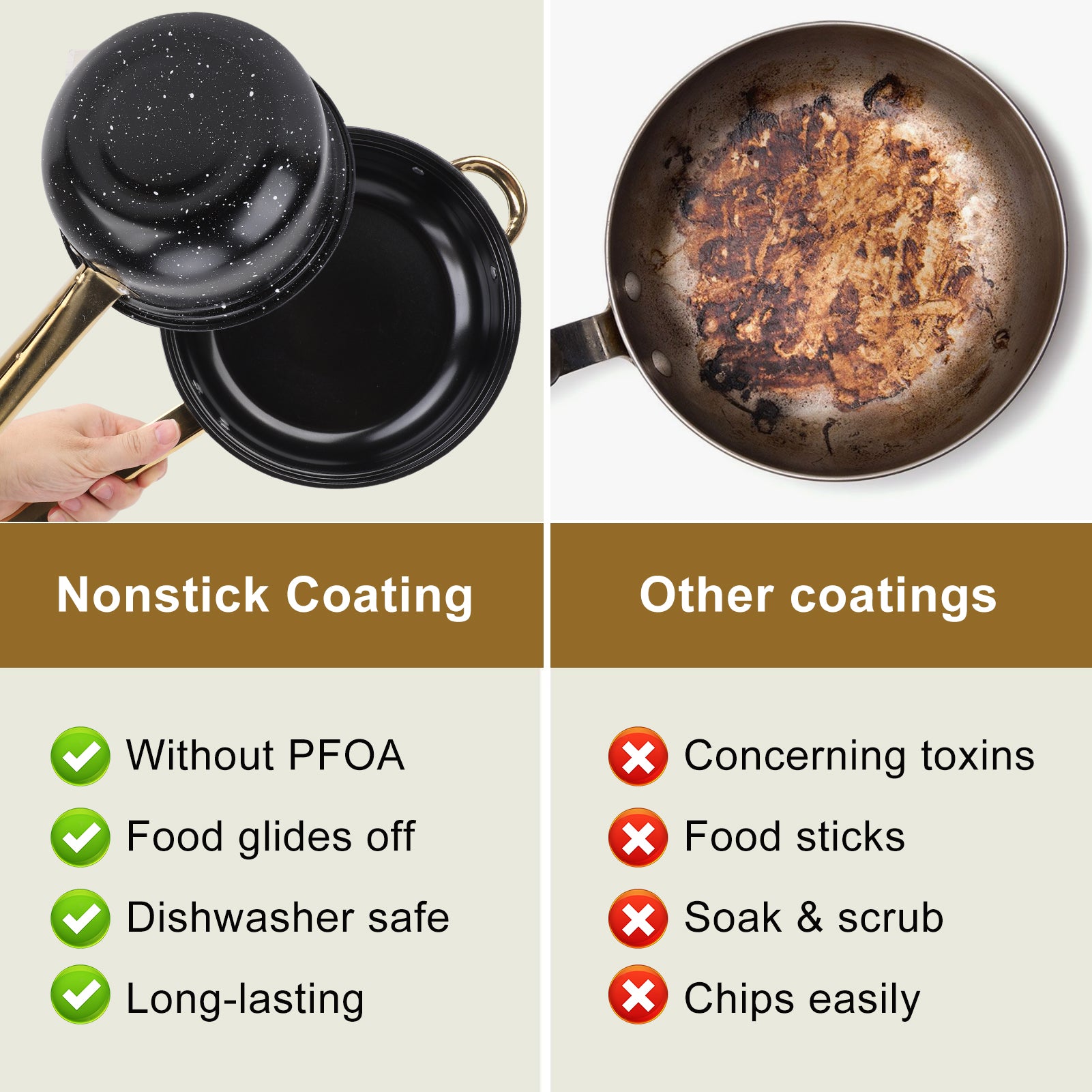 - Compatibility: Designed for universal use, this pan and pot set features good heat conduction and is compatible with gas stoves, electric ceramic cooktops, halogen stoves, and induction cookers.