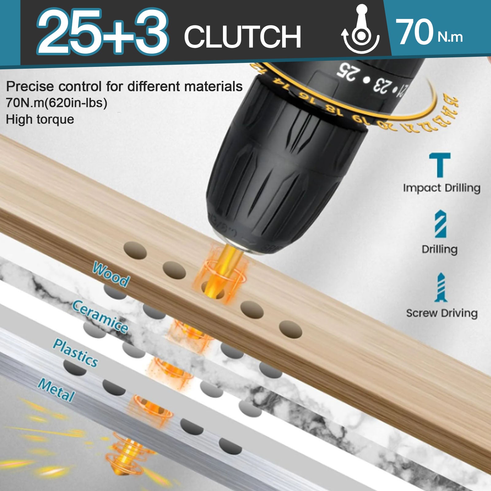 📌【Versatile Design & 25-70 Nm Torque】