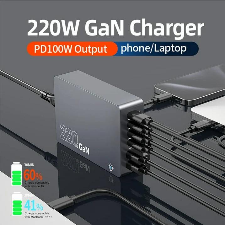 - 220W Multi-function 6 in 1 GaN Charging Station