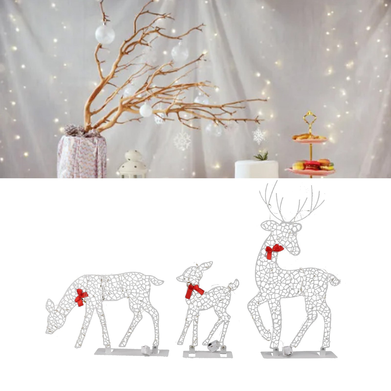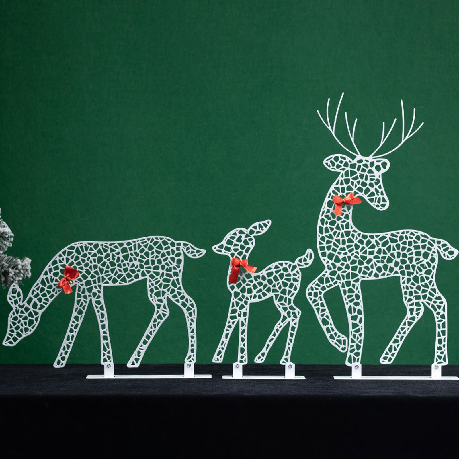 Deer Family set: Includes a , a doe and a fawn, each deer with red bows and bells around its neck, showing rich Christmas elements and enhancing the festive atmosphere