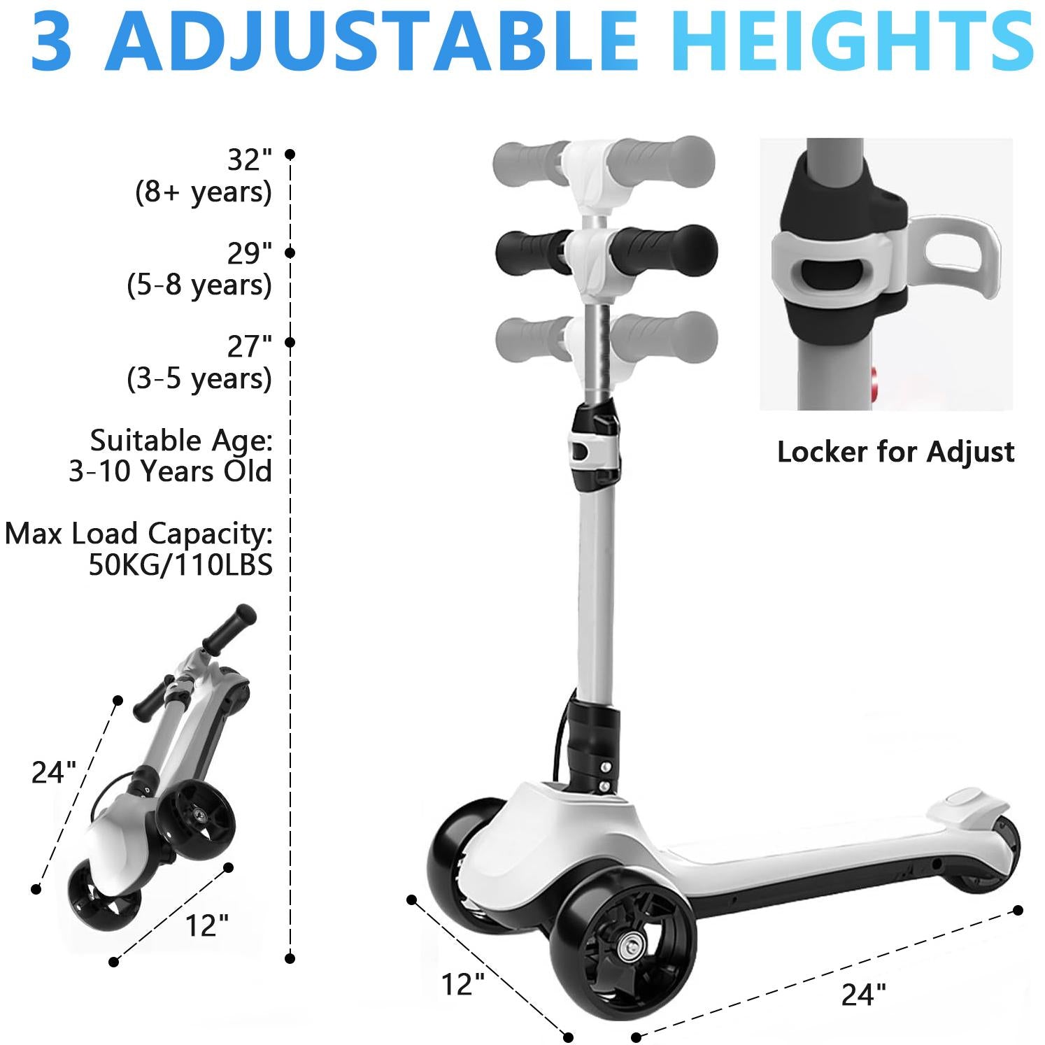 - 3 ADJUSTABLE HEIGHTS(27''/29''/32'') FIT BOYS & GIRLS. SURPRISING BIRTHDAY GIFT FOR YOUNG KIDS AND TODDLERS.