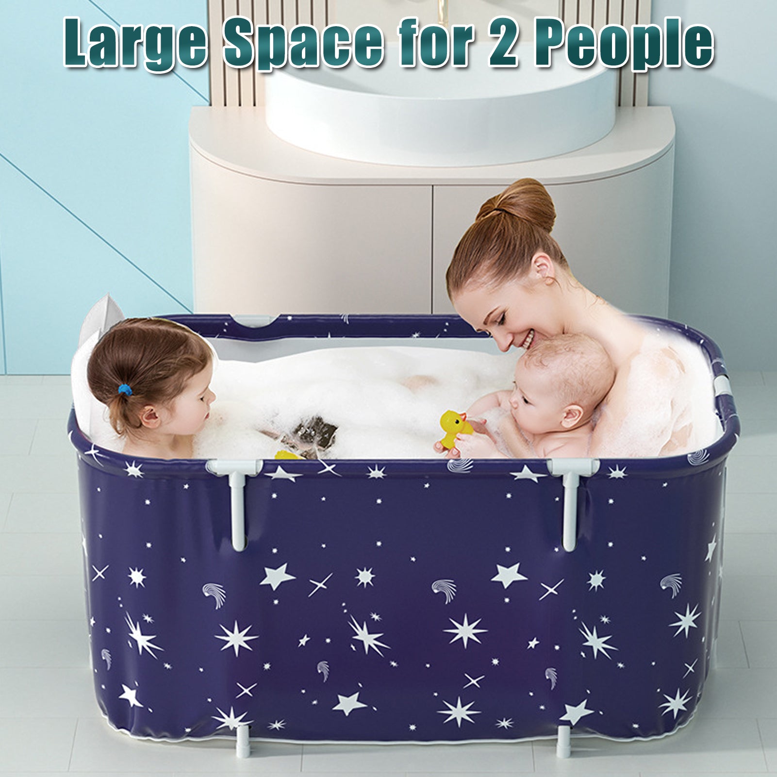 47in Foldable Bathtub Portable Soaking Bath Tub Ice Bathtub Hot Bathtub Bathing Tub for 2 Person with Back Pad for Shower Stall,Thickening With Thermal Foam to Keep