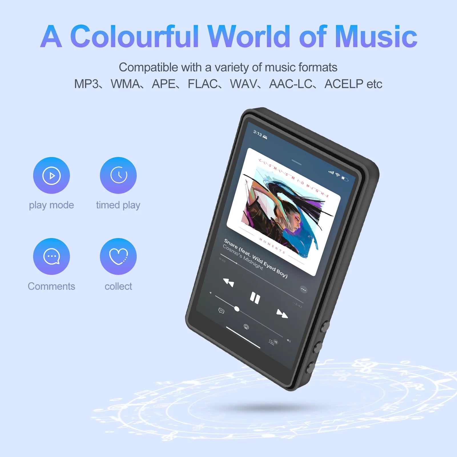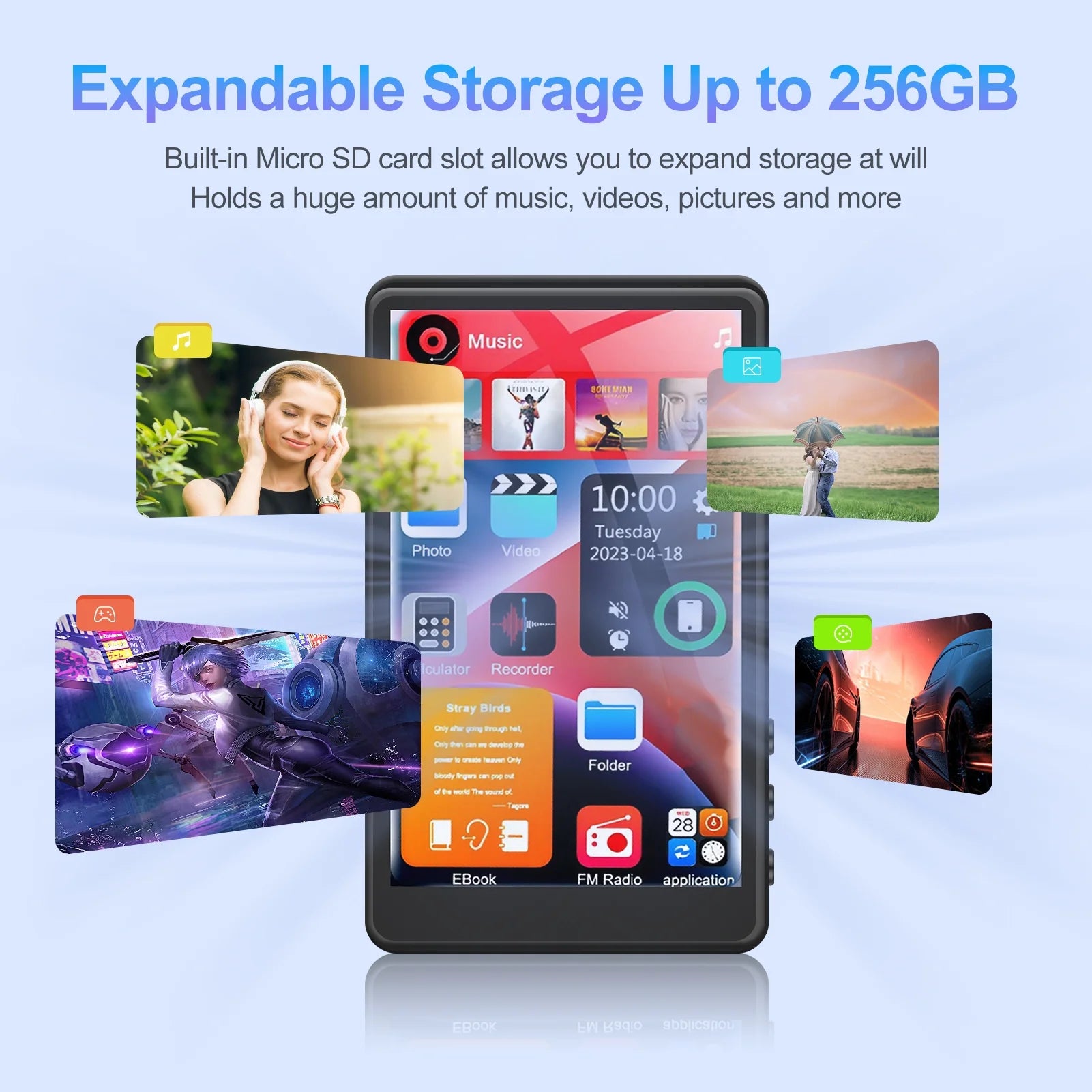 48GB Mp3 Player with Bluetooth, 4.0" Touchscreen Music Player with Speaker, Portable HiFi Sound MP4 MP3 Player with Earphones, Voice Recorder, E-book, Picture, Up to 256 GB, Black