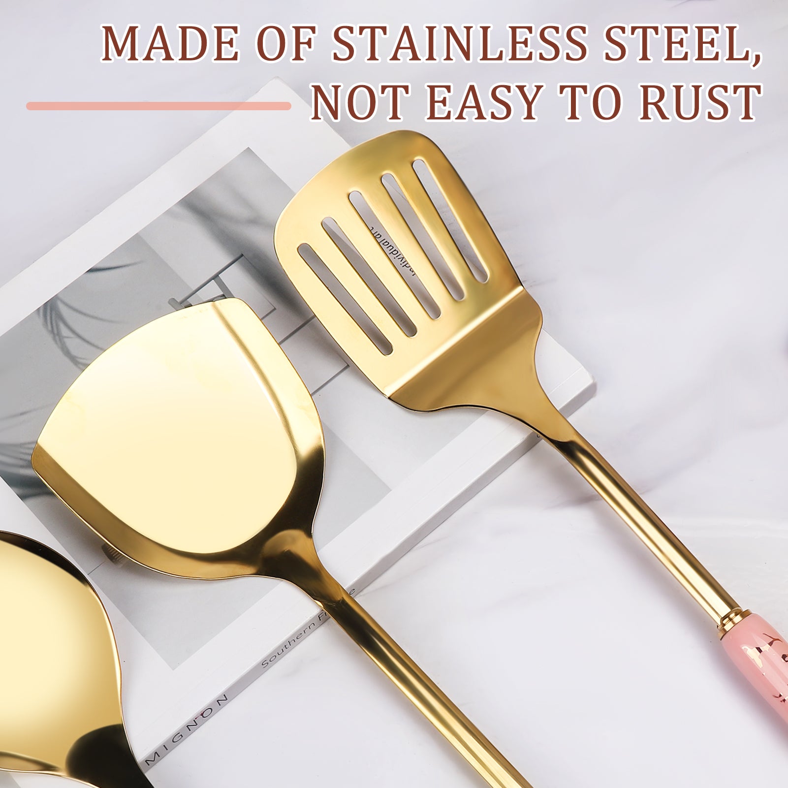 This cookware set includes full scooping tools: a colander, a shovel, a frying shovel, a rice scoop, a spoon and a noddle spoon, can meet various demands of scooping in daily life.