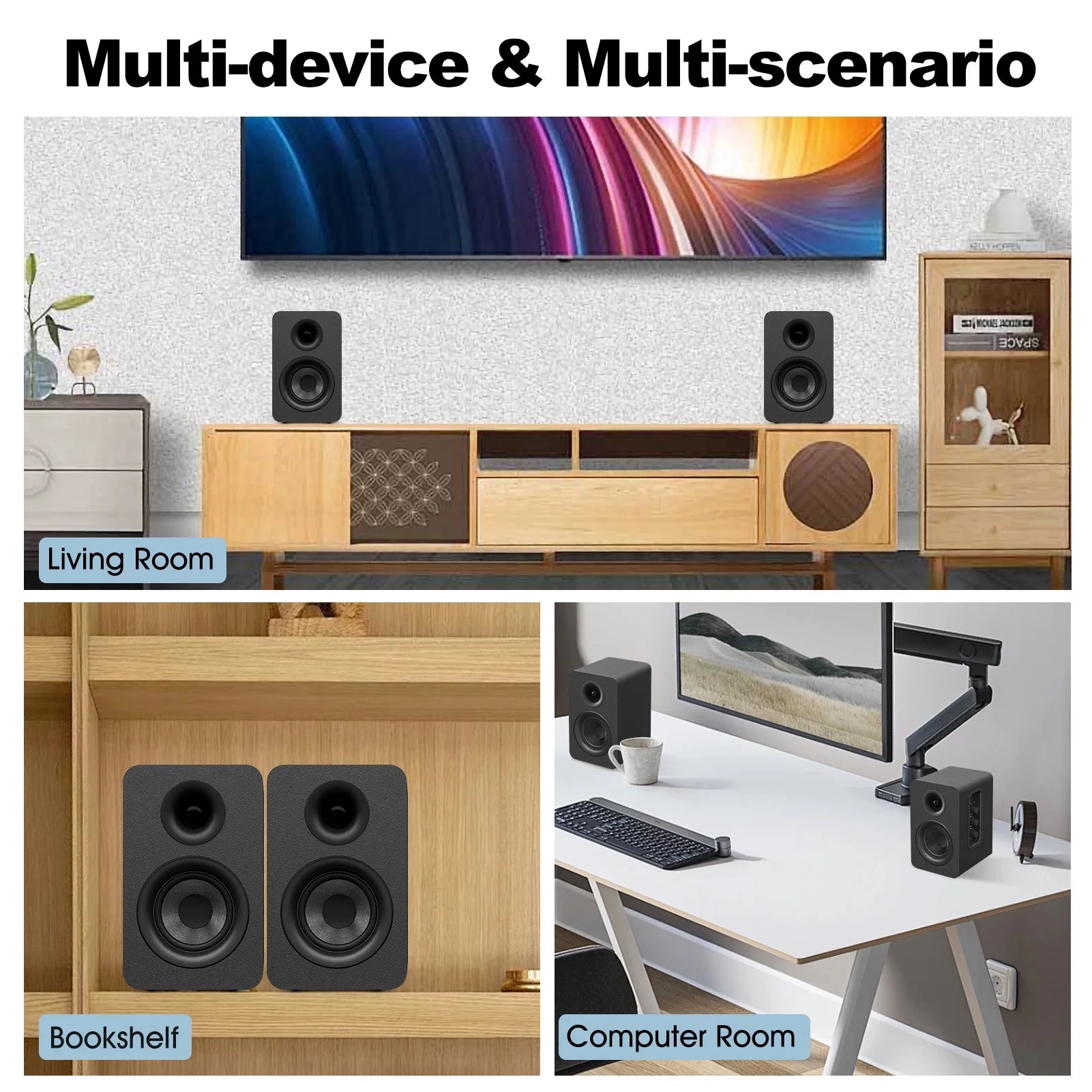 Upgraded to Bluetooth 5.3 version, the bookshelf speakers offer faster pairing, extended range, and ultra-low latency, delivering high-fidelity sound in any space. Easily compatible with iPhone, Android, tablet, projector, PC, or TV for seamless device connectivity.
