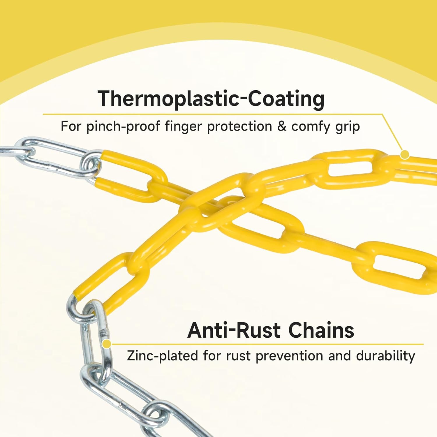 Our swing seat has a simple and classic design that looks great in any backyard, tree, porch, or patio. The heavy chains are coated for comfort and safety, and the seat is made of EVA for durability.