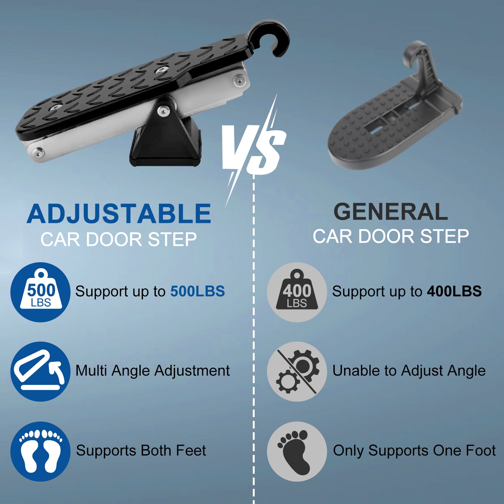 Car Door Step 7 Gear Adjustable Car Step Hook and Foldable Foot Pedal Supports Both Feet,Max Load 500 lbs for Most Cars, SUVs and Trucks, Black