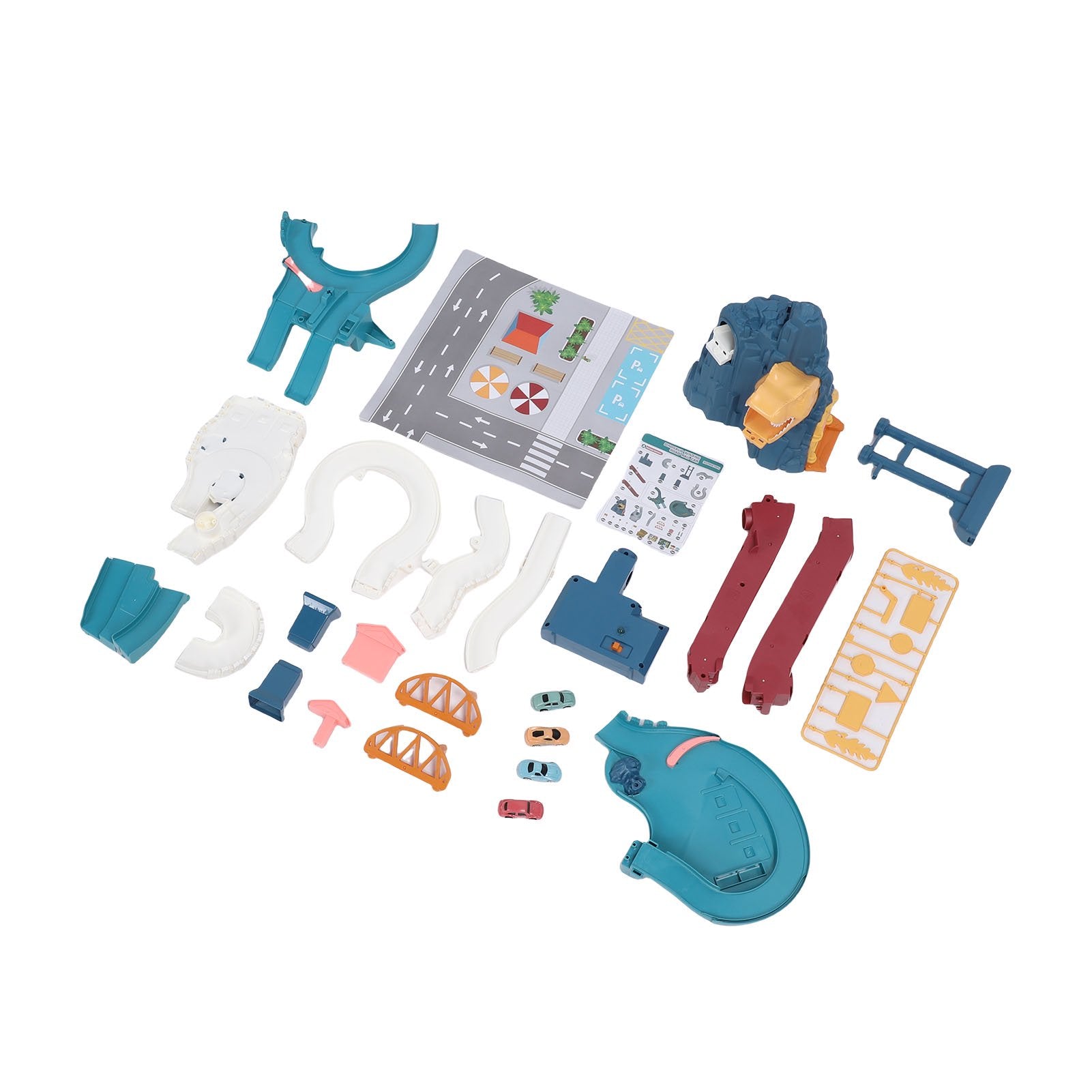 - Item Type: Dinosaur Race TrackMaterial: ABSParts Count: 29 PCSBattery Requirement: 3 x 1.5V AA Batteries (not included)Size: Approx. 57 x 36 x 29cm / 22.4 x 14.2 x 11.4in