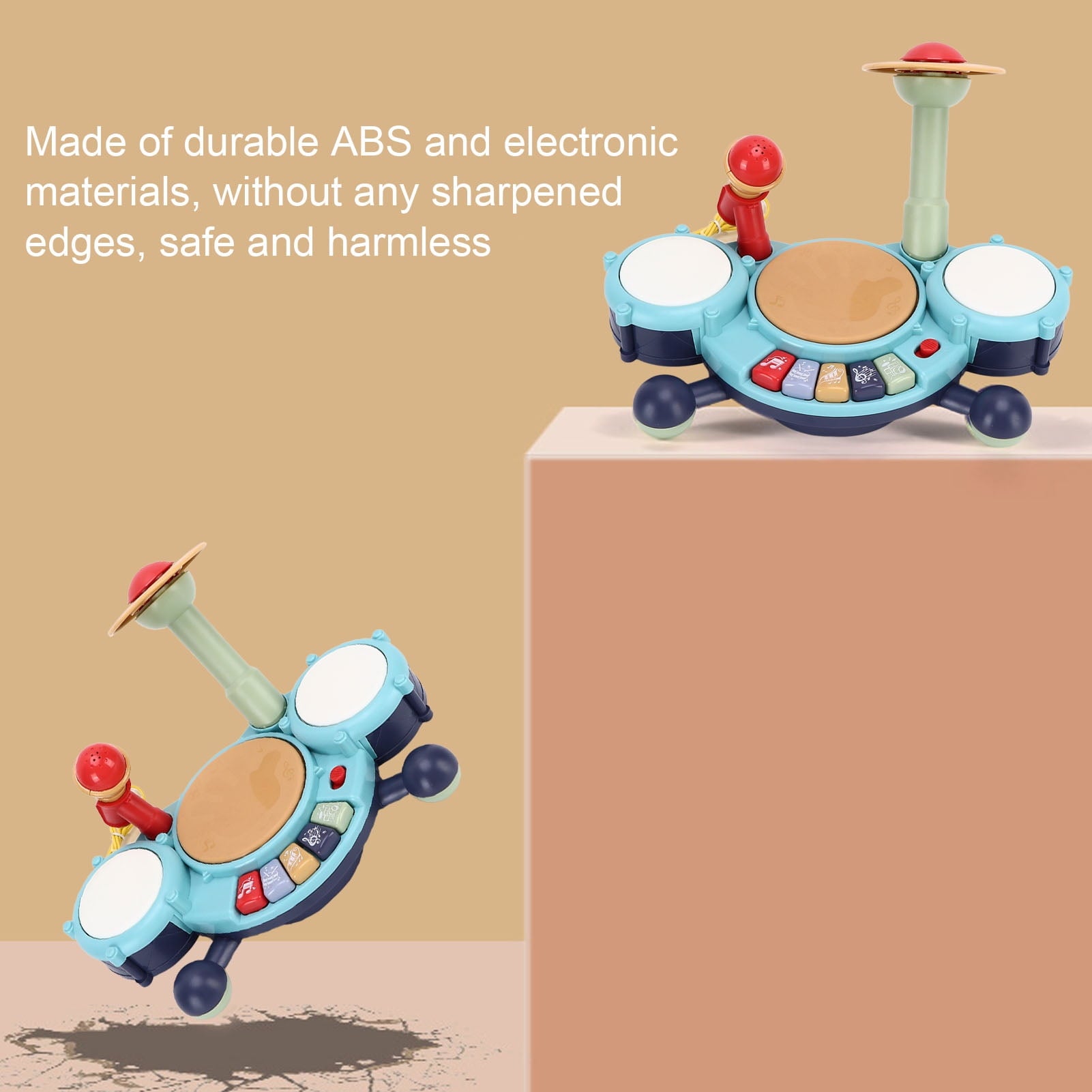 [Safety] Made of ABS plastic and electronic components, this pretend play drum toy set has no sharpened edges and emits no unusual smells, ensuring your child's safety. It can be easily cleaned if it gets dirty.