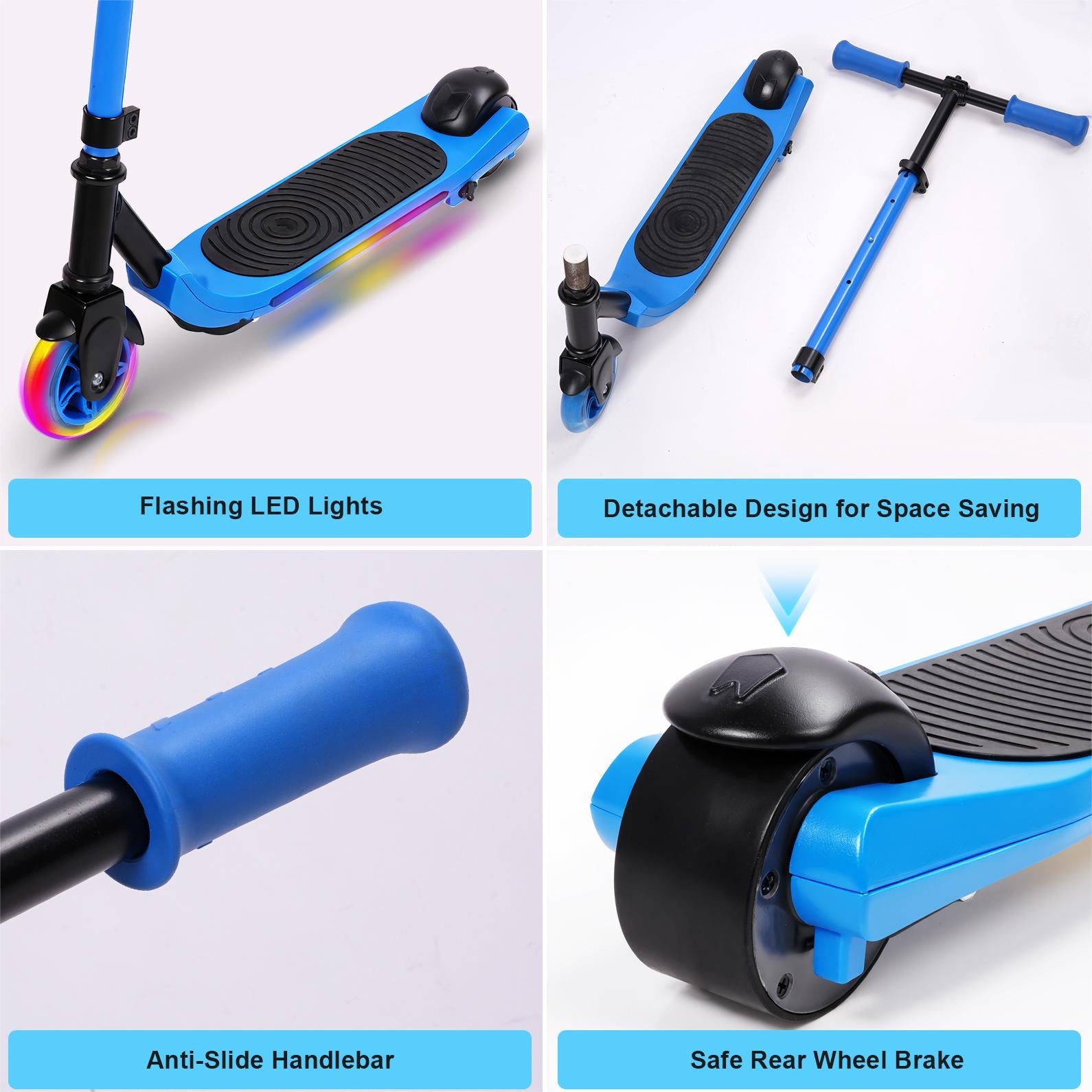 Electric Scooter: Experience the convenience of our electric scooter featuring a detachable 2000mAh Li battery, making charging and replacement effortless. Whether you're commuting or enjoying a weekend ride, this scooter is designed for ease of use.Easy to Glide: You can glide smoothly with minimal effort. Enjoy a range of travel distances of 8 to 10 kilometers on a single charge, ideal for short commutes or leisurely rides around the neighborhood.Portable: Its design ensures easy portability and storage. It supports adjustable height settings ranging from 69 to 85 cm, accommodating various user preferences for a comfortable ride.Stable Two Wheel Design: Equipped with a two wheel setup, it provides high stability, ensuring a safe and steady ride. Additionally, the built in flashing lights enhance visibility, making you more noticeable to pedestrians and vehicles alike.Double Braking System: The electric scooter features both foot brake and mechanical brake options, giving you the flexibility to choose your preferred stopping method. -