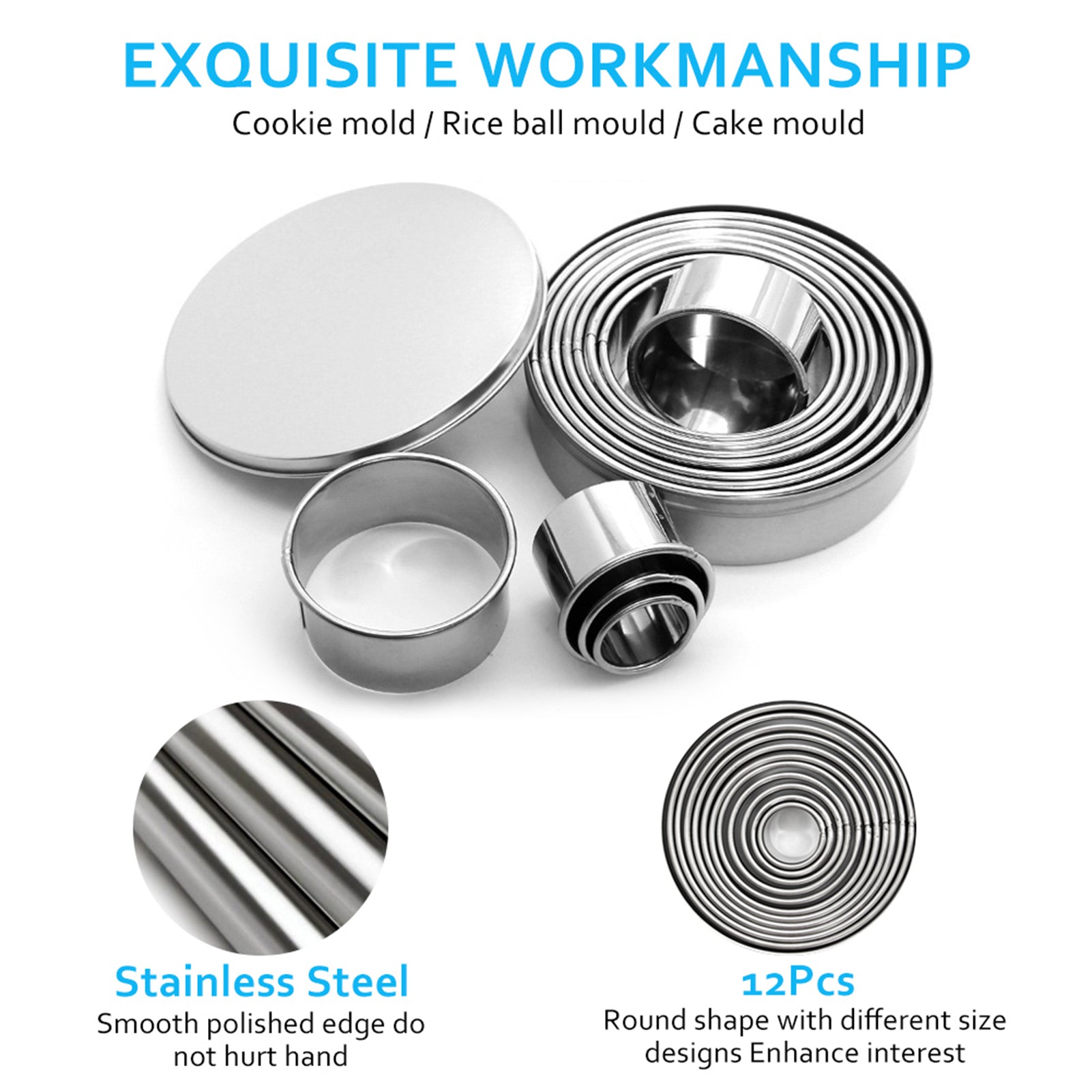 EOTVIA 12 Pcs Donut Hole Cookie Cutter Set for Baking, Graduated Doughnut Round Cookie Cutters, Metal Scone Circle Cookie Cutters for Frying, Biscuits Rings Molds for Cooking Cake(1-4.4 Inch)