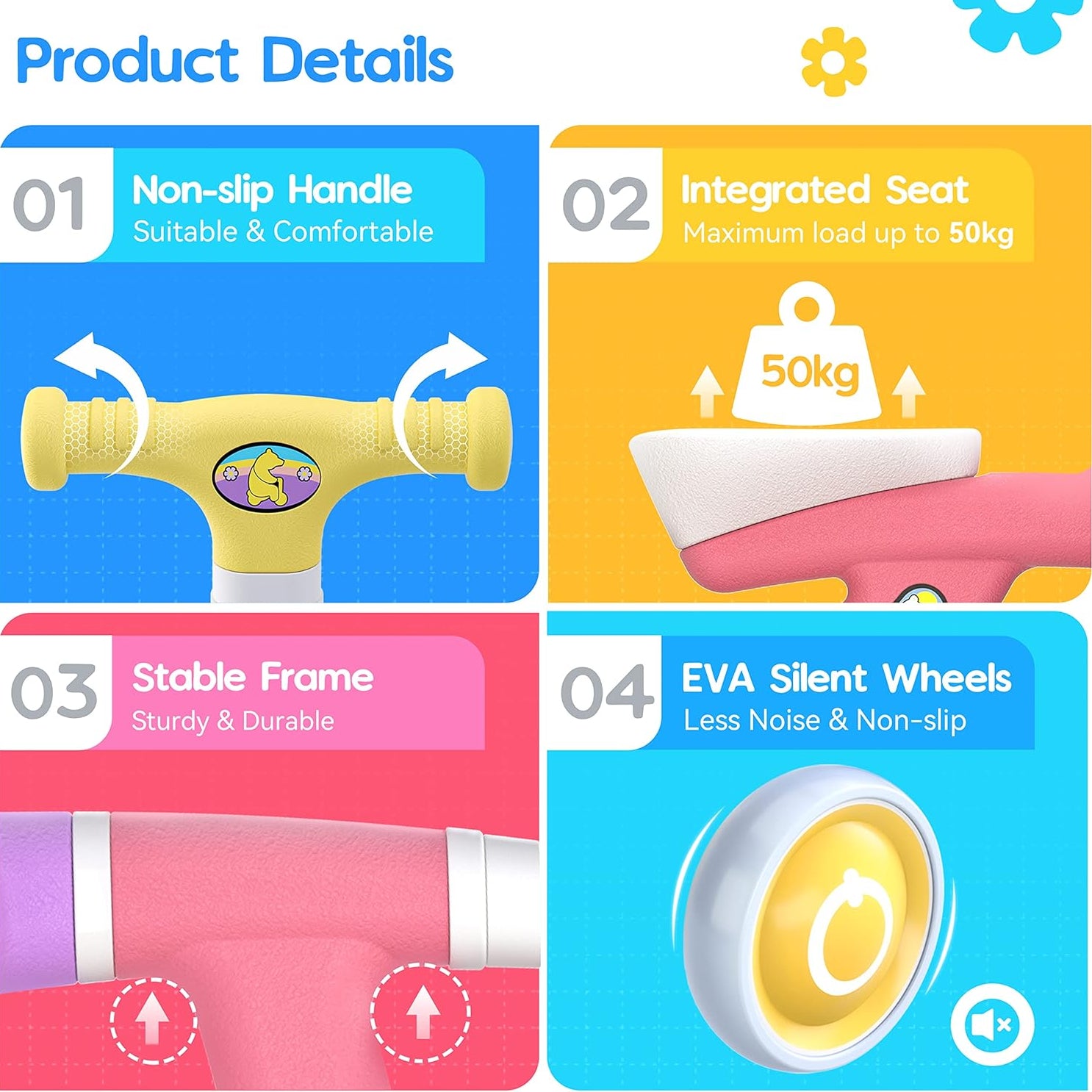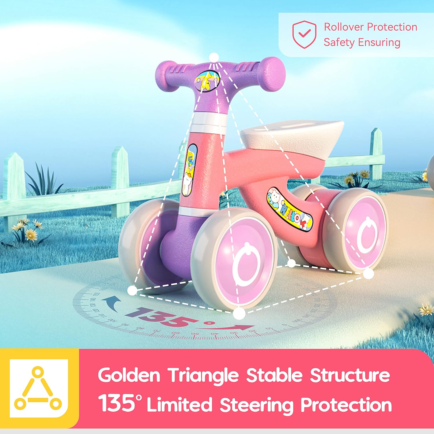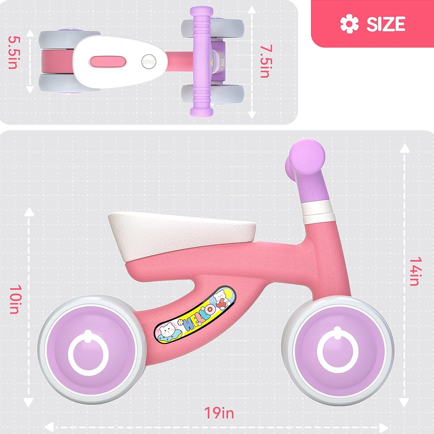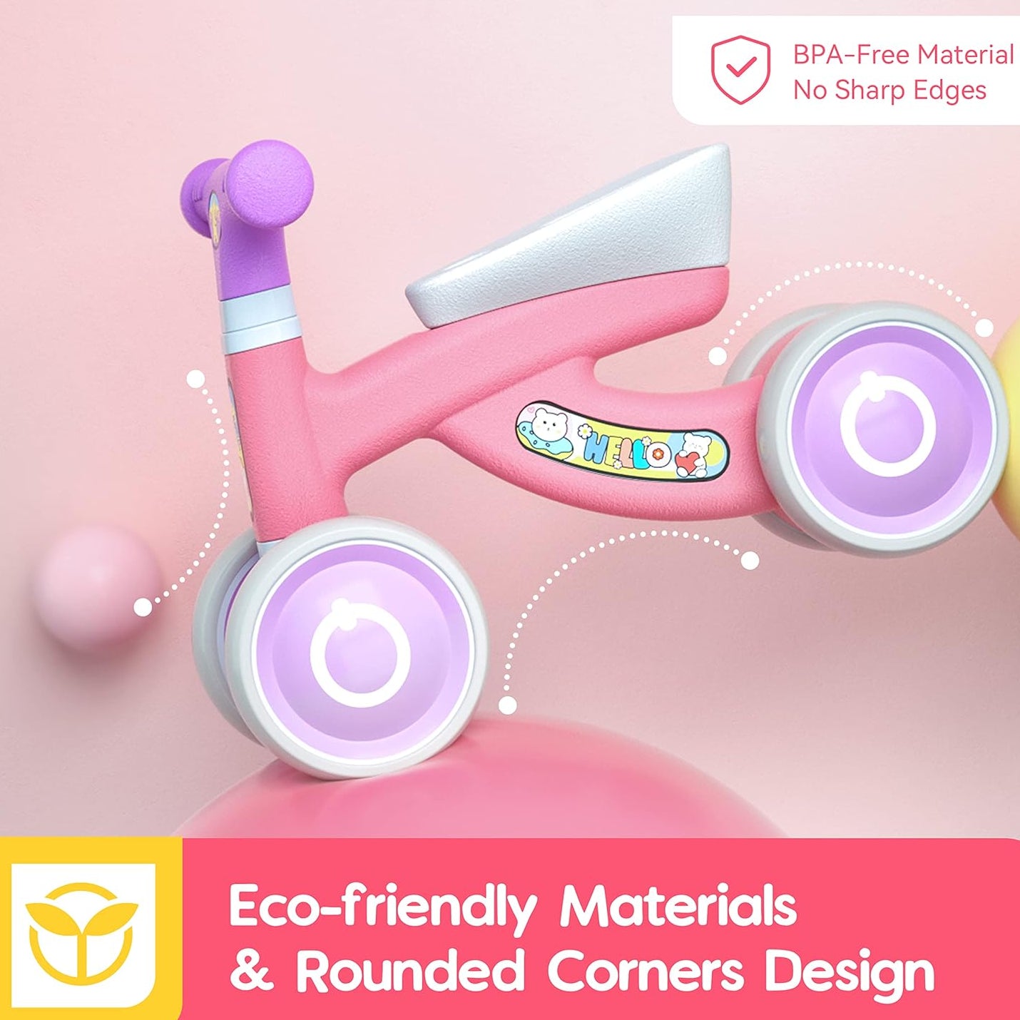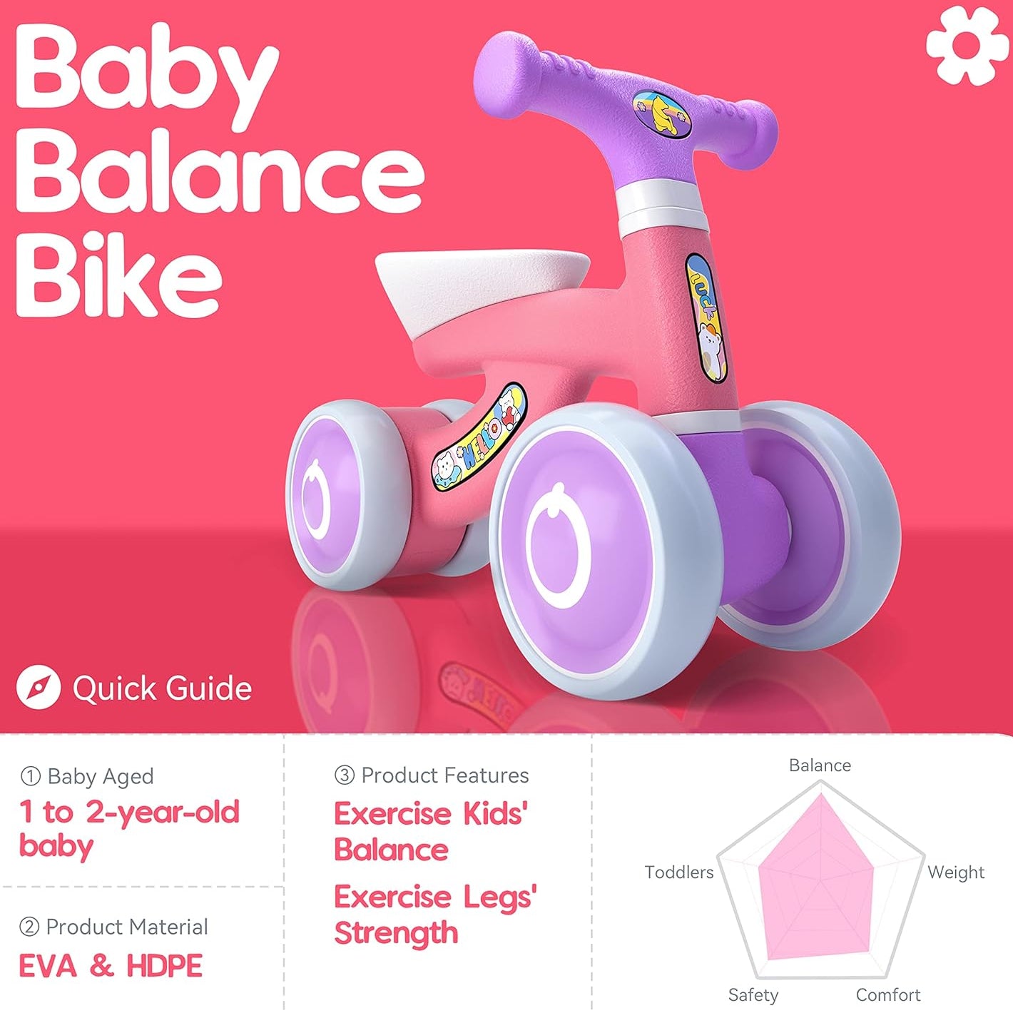 Eotvia Baby Balance Bike, Lightweight Toddler Baby Bicycle with 4 Wheels, Infant Bike Baby Outdoor Bike Riding Toy for Preschool Kids Toddlers Children Boys Girls Age 1-2 Years, First Birthday Gifts