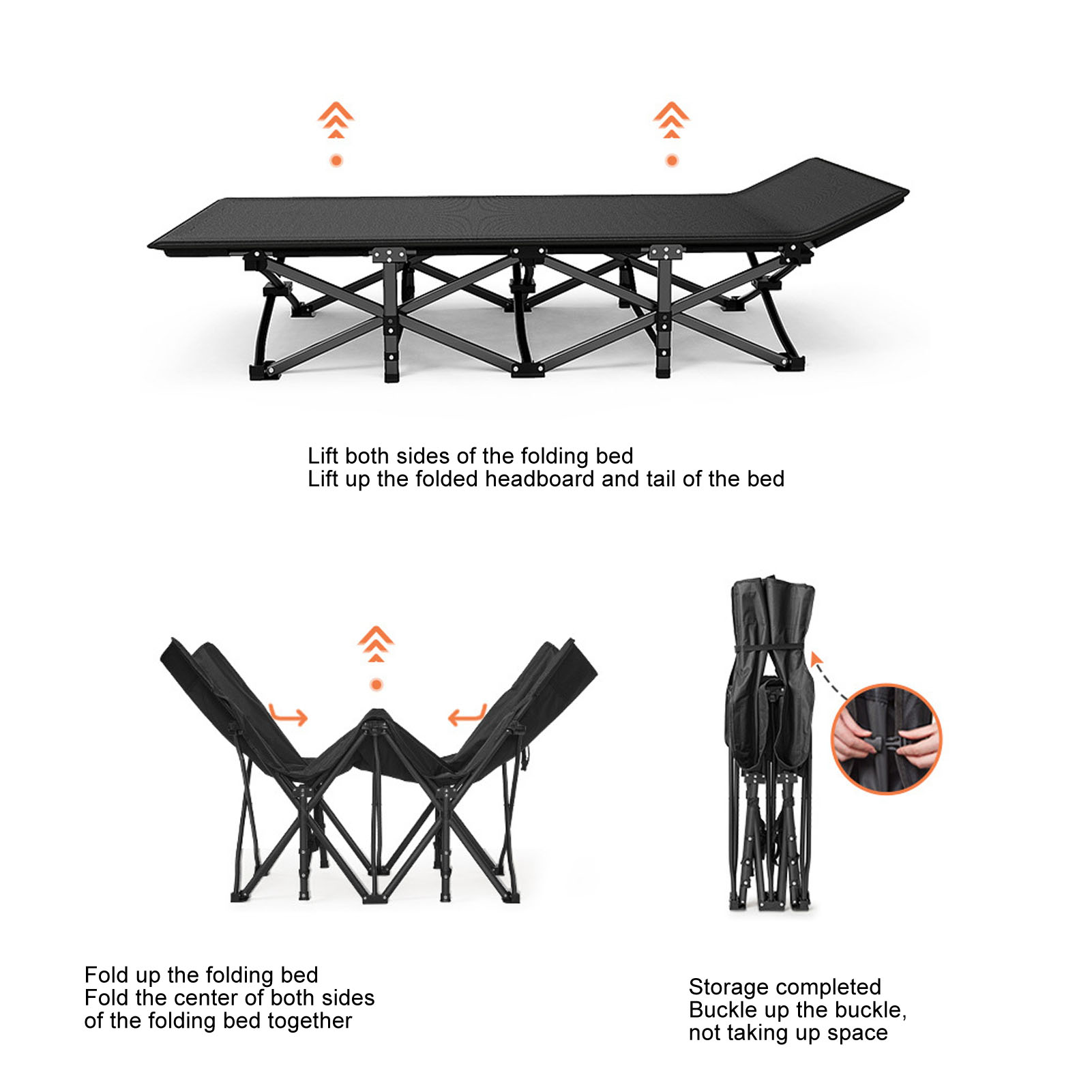 Folding Camping Cots for Adults, Portable Outdoor Camping Bed with Mattress, Heavy Duty Guest Bed Sleeping Cot Folding Bed for Camping Traveling Office Use, 74" x 26", Black, Supports 330 lbs