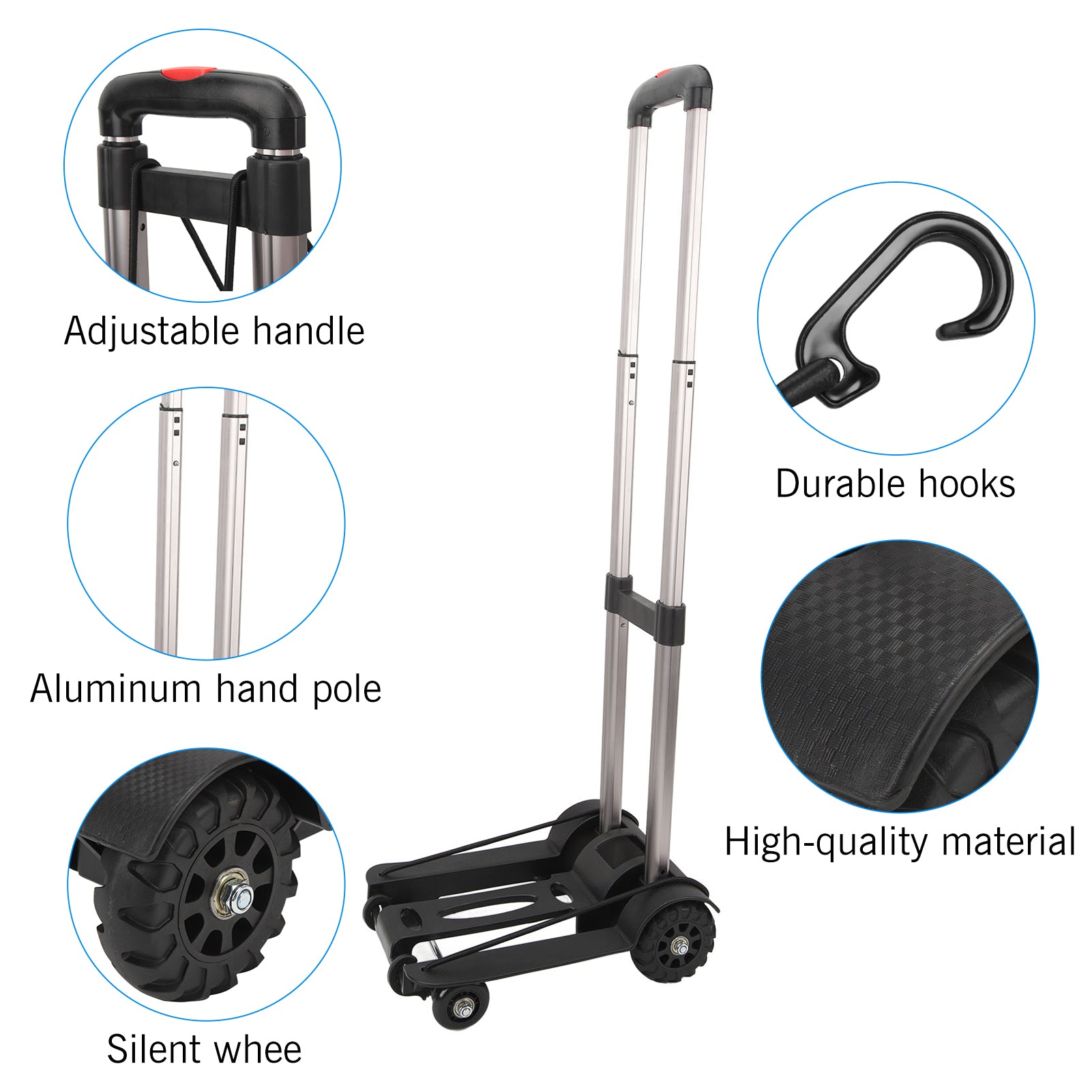 - ✅【ALUMINIUM ALLOY MATERIAL】: Made of aluminium alloy, the folding hand truck can withstand heavy use. Plus, the plastic base provides more protection for your items