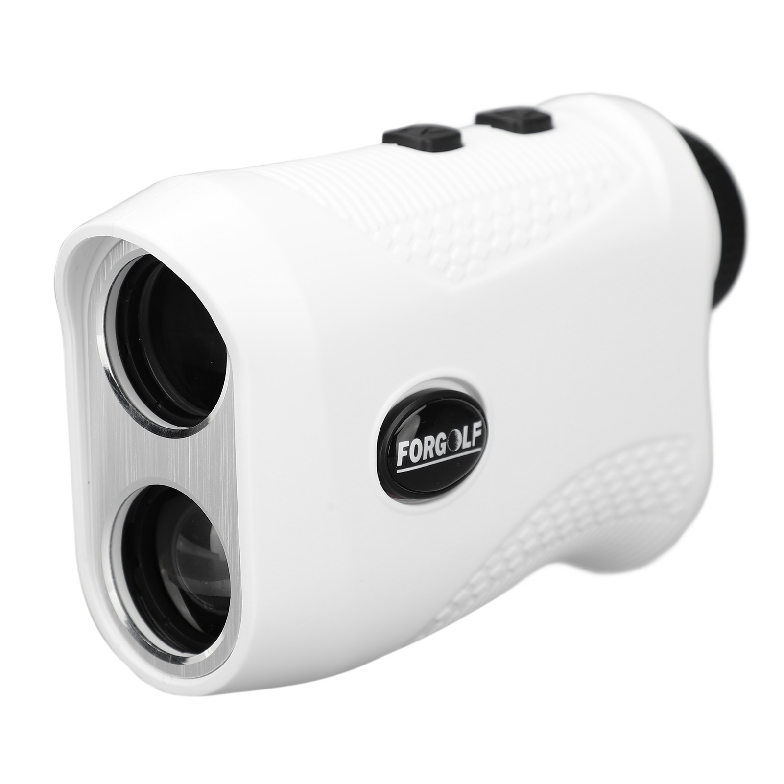 This golf rangefinder has a range of 3-1200 yards with an accuracy of 1 yard. It also has a transflective LCD display and a 6X magnification, which ensure clear and quick reading. The slope switch makes it legal for competition golf play while slope correction ensures even more precise distance.