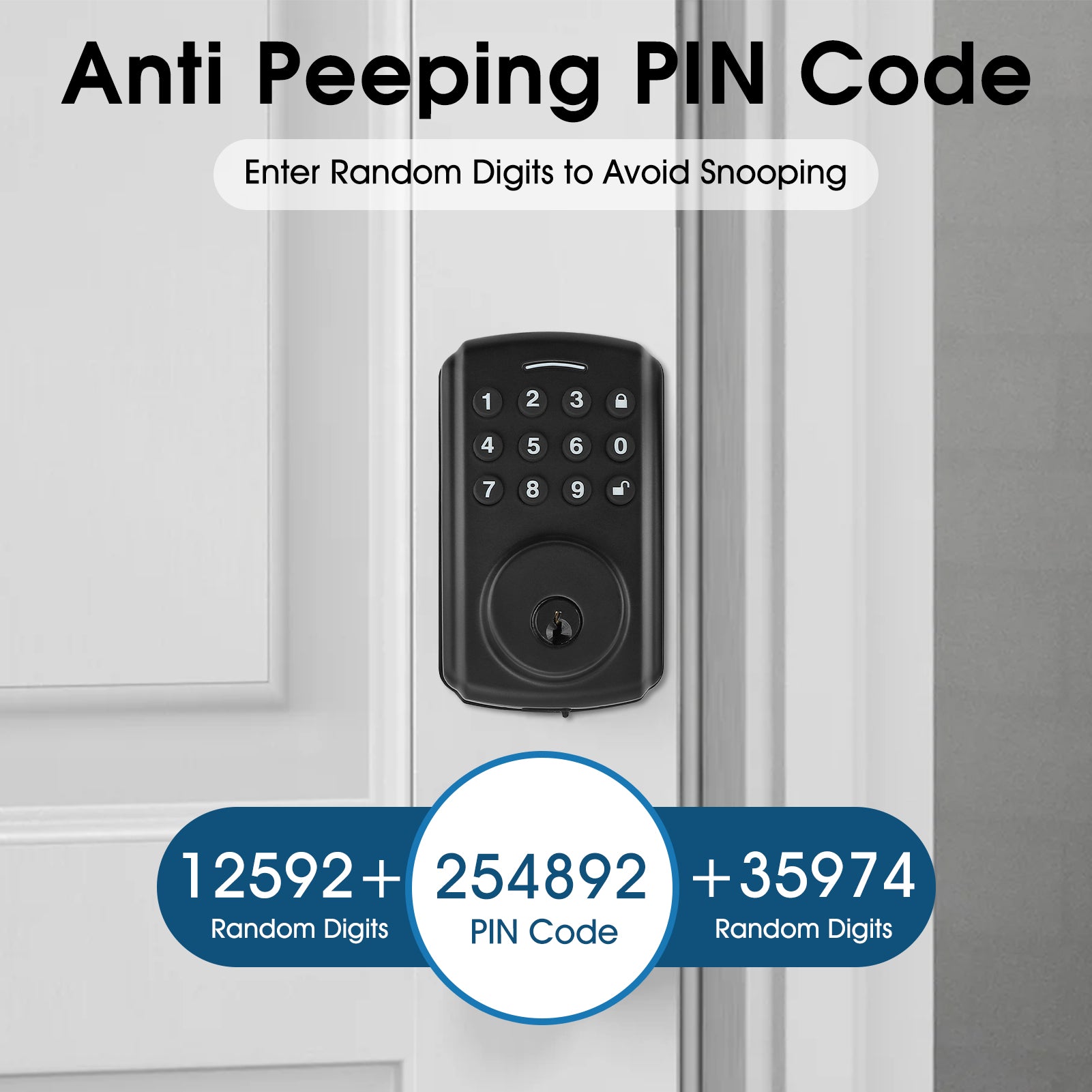 Keyless Entry Door Lock Keypad Electronic Smart Deadbolt For Front Door With 2 Keys, Digital Lock Anti-Peeking Password,Auto Lock,Easy Installation Matte Black