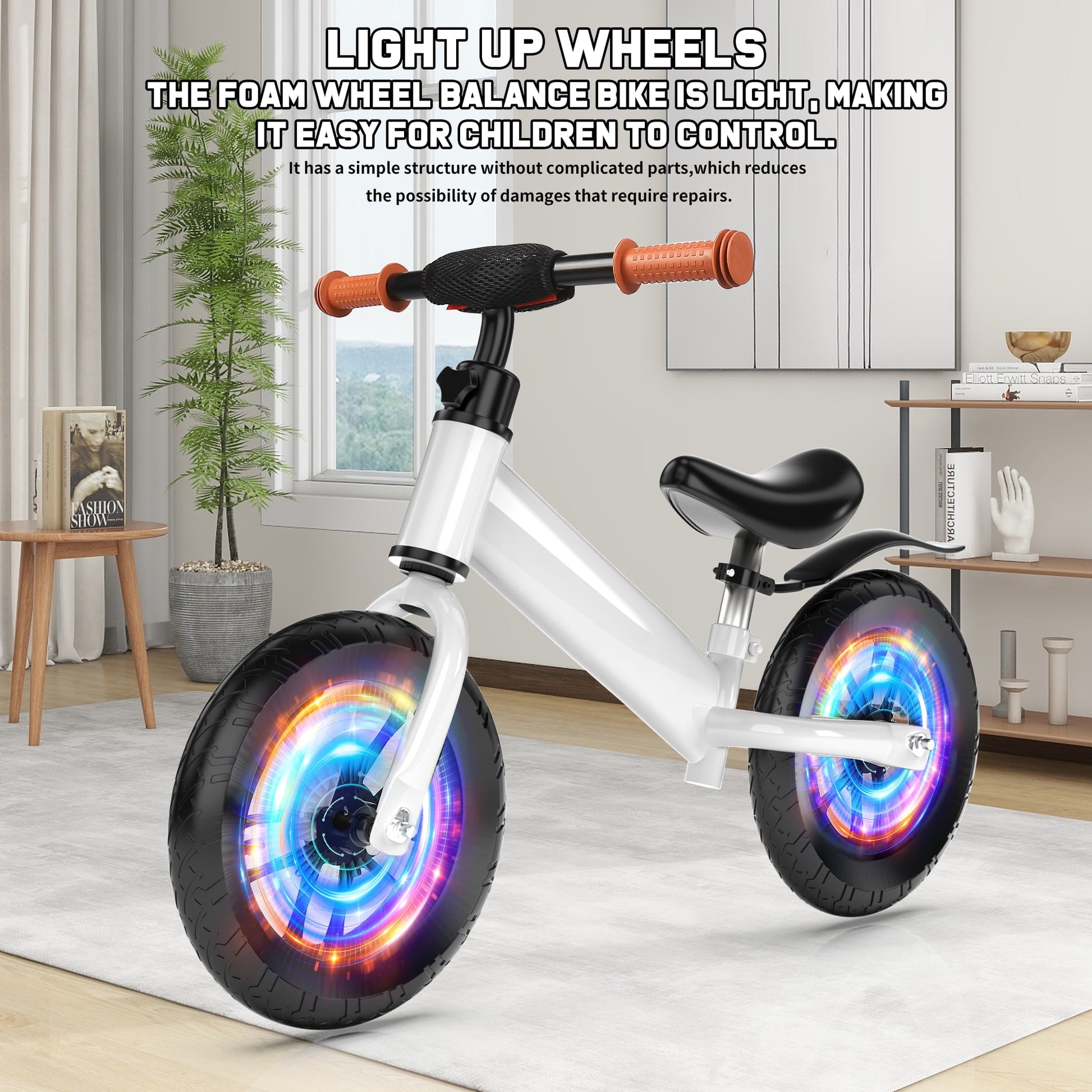 Kids 12inch Balance Bike Colorful Lighting up Wheels No Pedal Bikes for 2 3 4 5 Toddlers Boys Girls, White