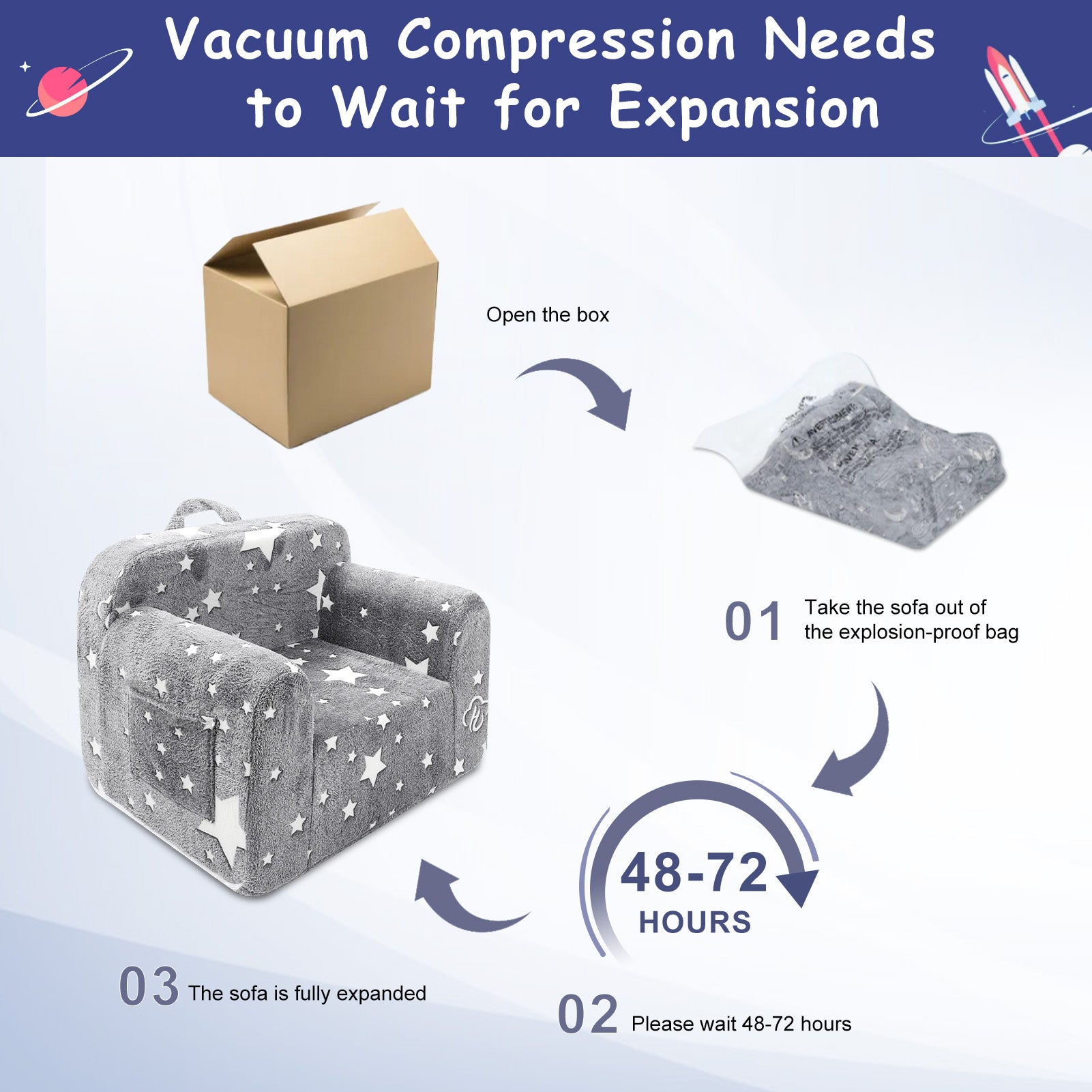 Toddler Chair Glow in The Dark Memory Foam Kids Sofa Couch Reading Chair with Removable Washable Cover for Boys Girls