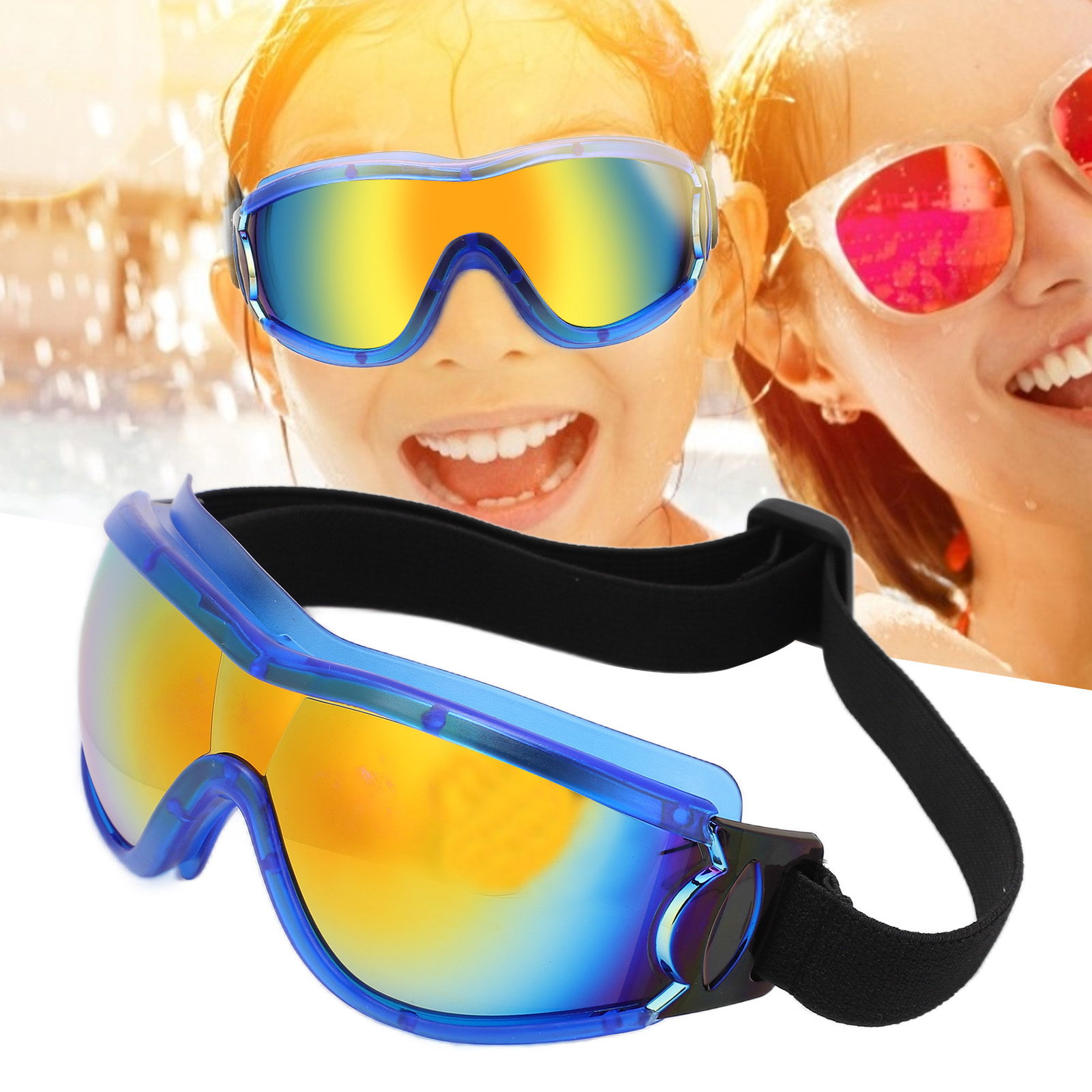 Kids Swimming Goggles, Kids Goggles Stretch Cloth Design for Children Blue Frame Imitation Red Film