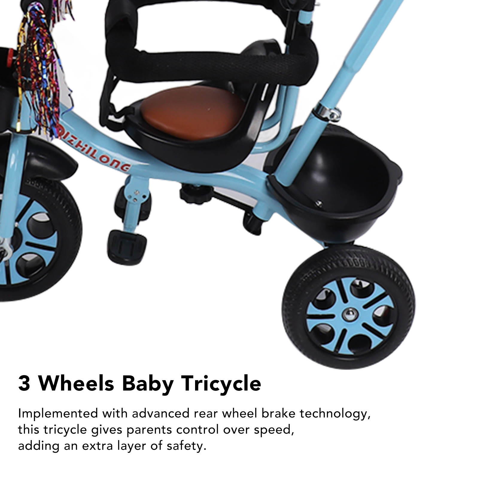 The kids trike with removable canopy for toddlers ages 1-4 years old is an unique and versatile unisex tricycle that can bring a lots of fun while helping beginners practice balance and motor skills. Multiple riding modes make it possible for your little one will be able to ride at his or her own pace. Our innovative pedal mechanism allows riders to place their feet on the pedals and enjoy the ride, while the adult is responsible for pushing and steering the trike. And a controlled turning radius prevents the push tricycle from tipping, ensuring your child rides safely and confidently. Once your baby is confident enough to ride the bike on their own, just simply remove the push handle. And as your child grows, the adjustable seat will allow your baby to enjoy the toddler tricycle for years of fun. In addition, the portable design enhances convenience, and you can even take it on trips because it's lightweight enough. I'm sure your little one will never want to leave their favorite toy again.