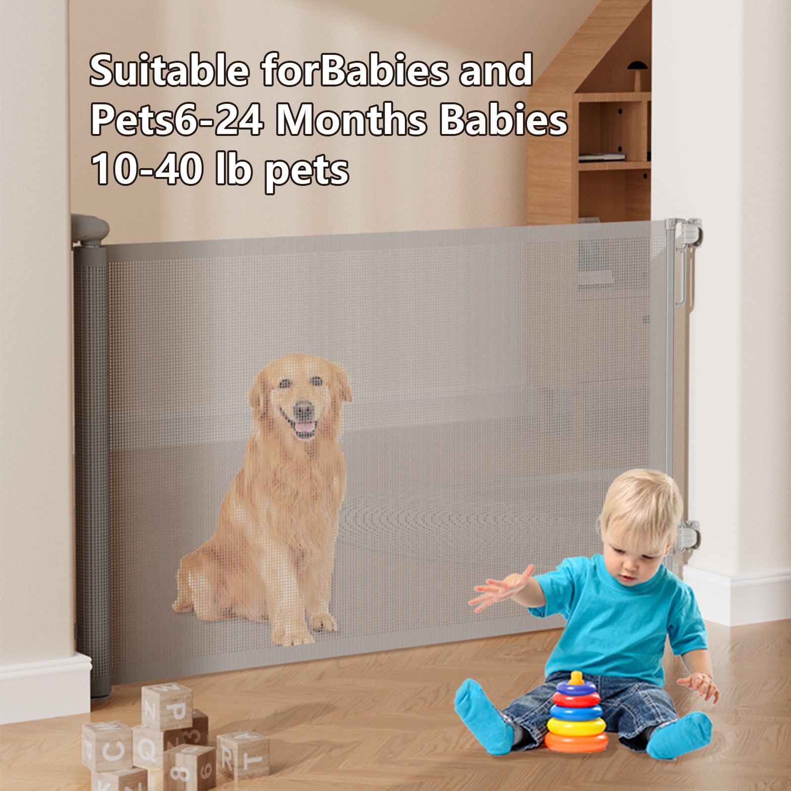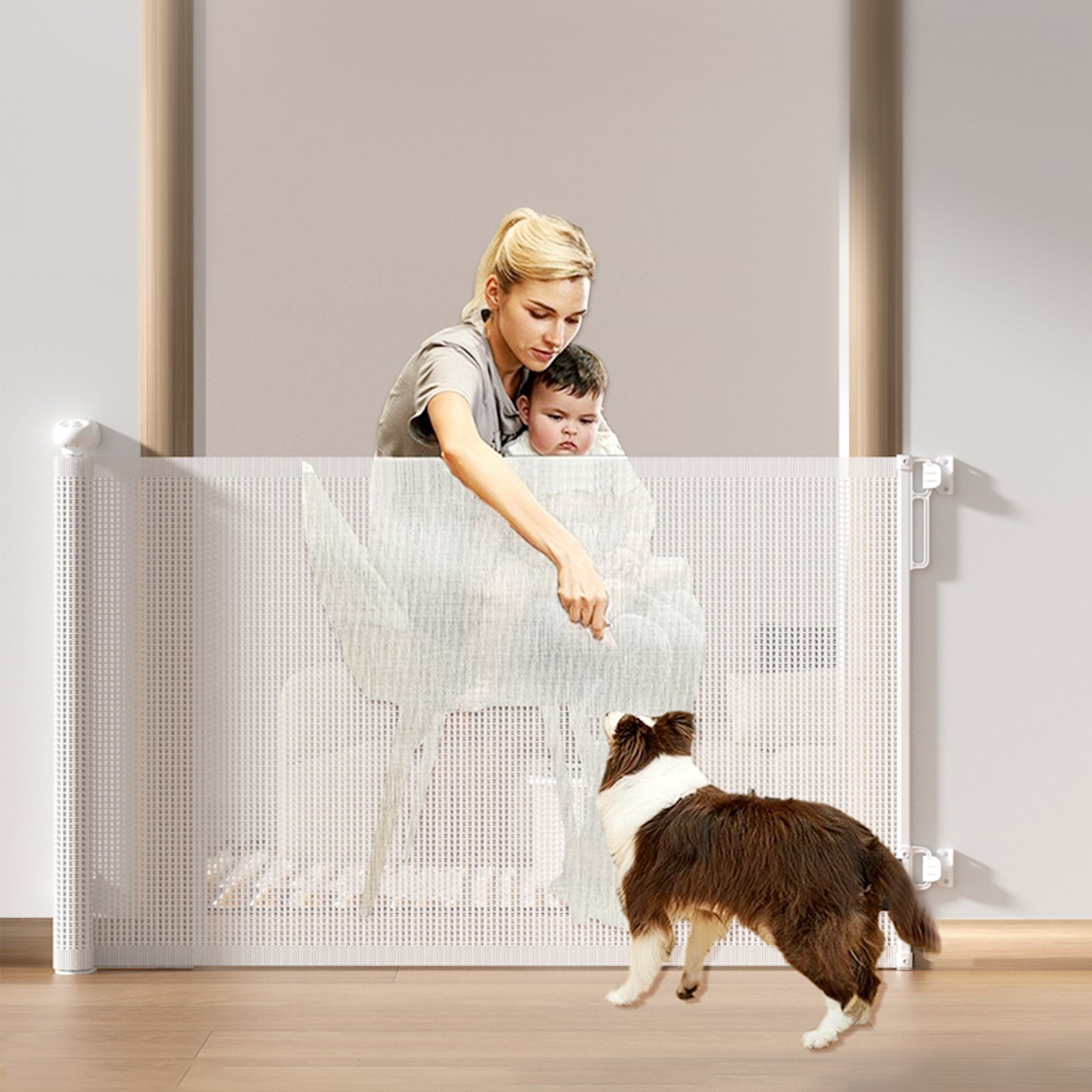 Space-Saving Design: Our retractable baby gates are ingeniously designed to adjust to widths of up to 55 inches and stand 34 inches tall. When not in use, they retract fully, optimizing your space for indoor or outdoor areas such as doorways, staircases, and hallways.