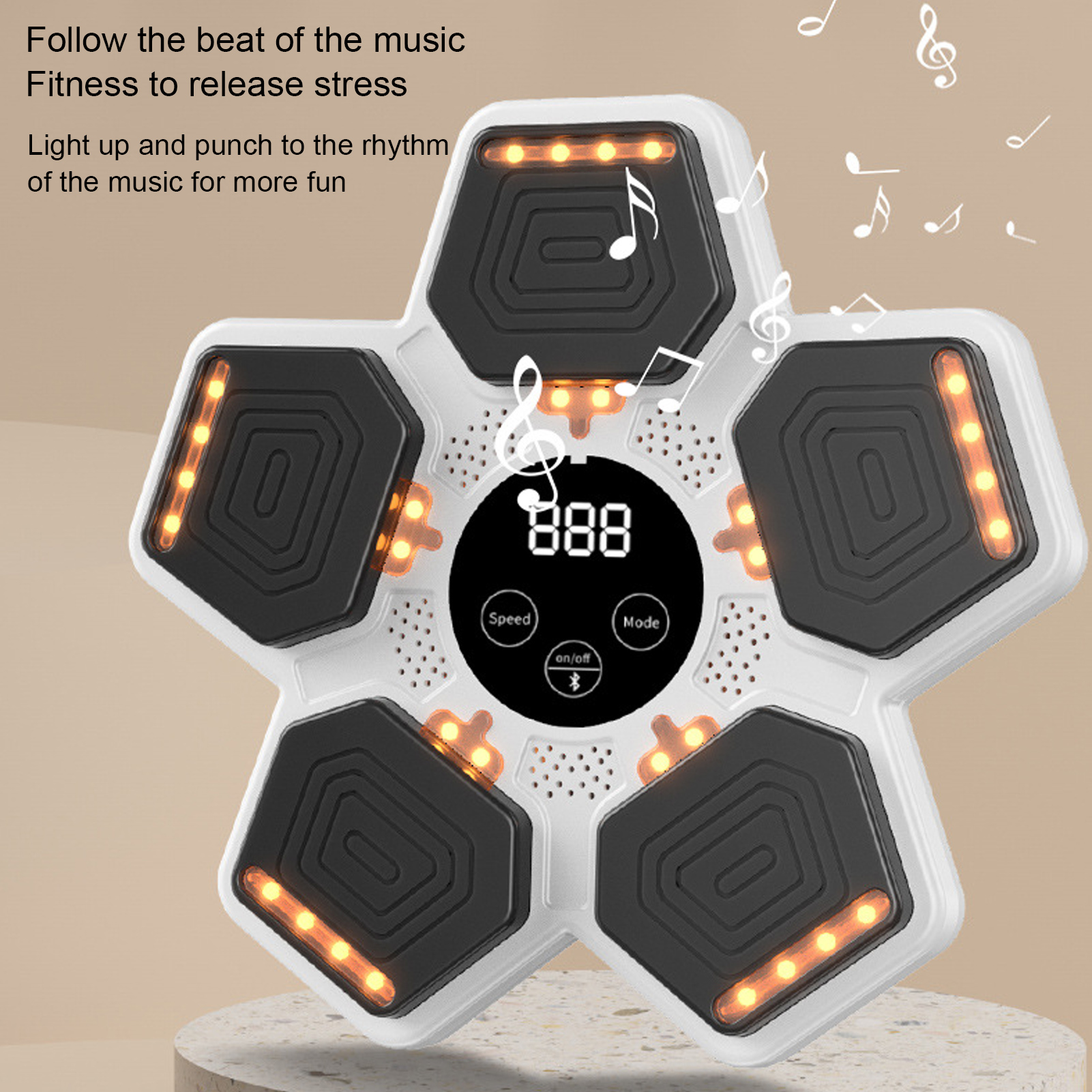 Features include Bluetooth-compatible audio for instant music streaming and dynamic LED strike points for enhanced reaction training.