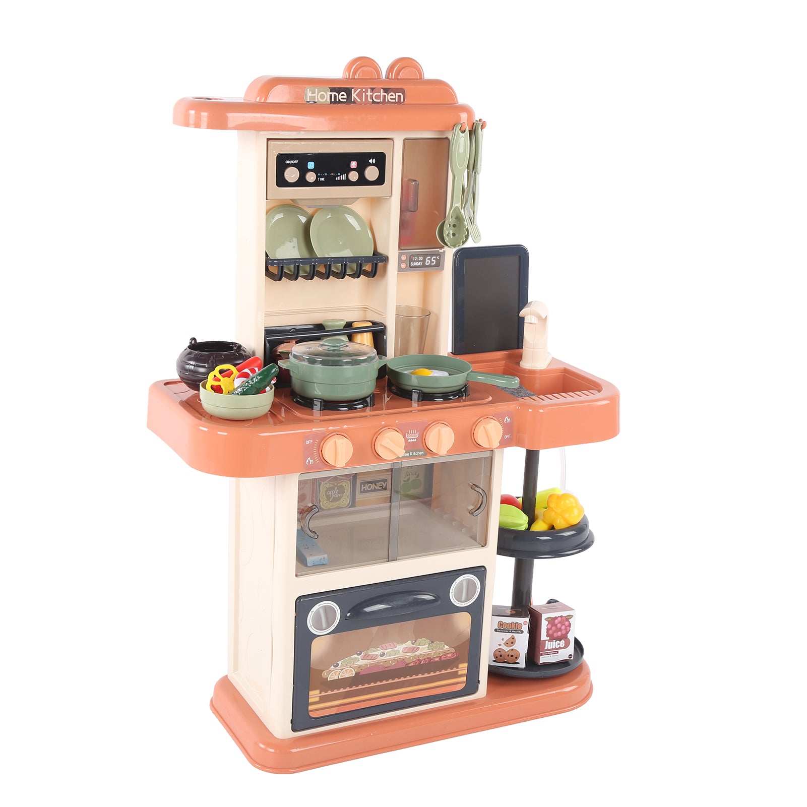 Play Kitchen Set For Kids, 65pcs 28Inch Kids Pretend Play Toy With Real Lights, Lamp,Sounds, Play Sink And Simulation Of Spray for Boys Girls