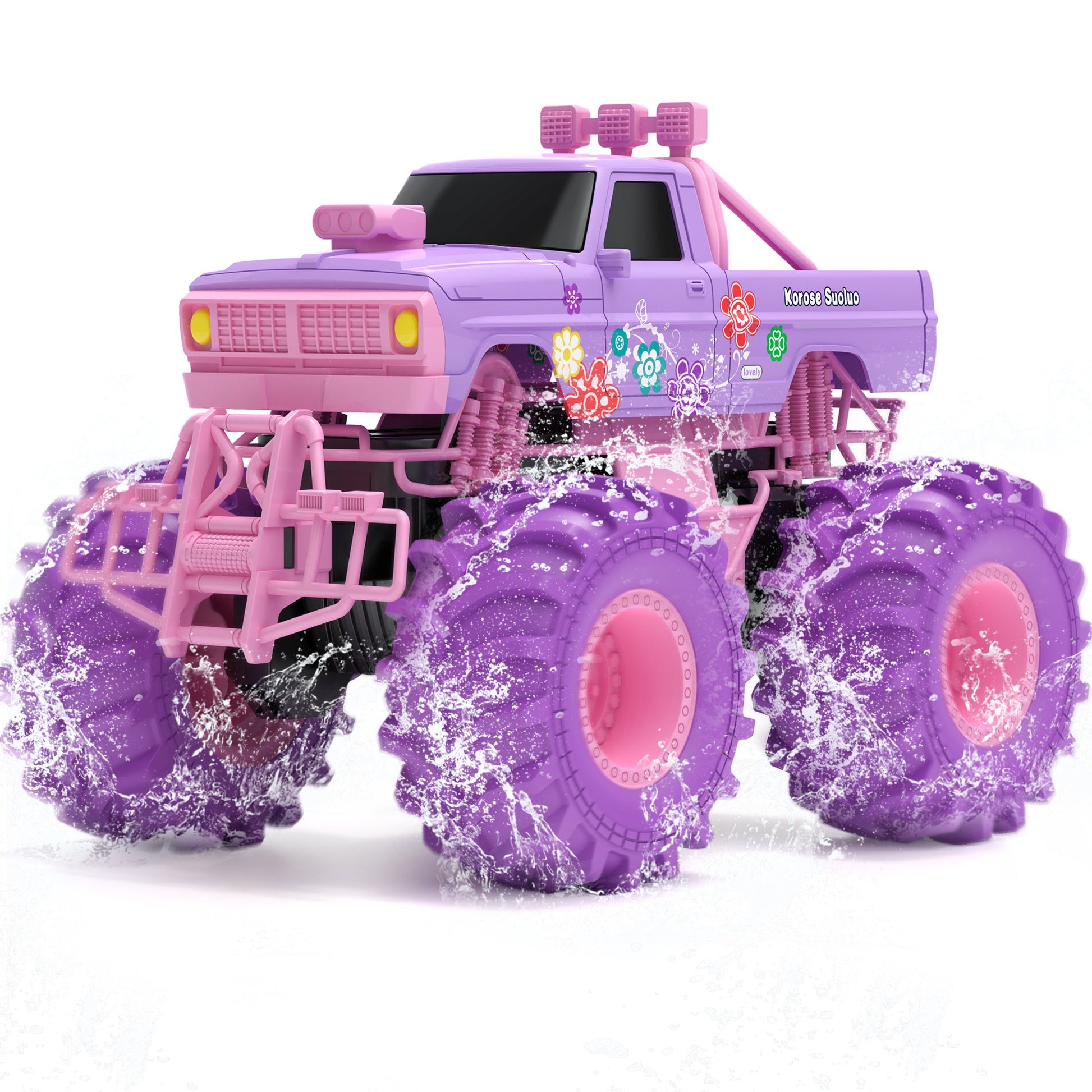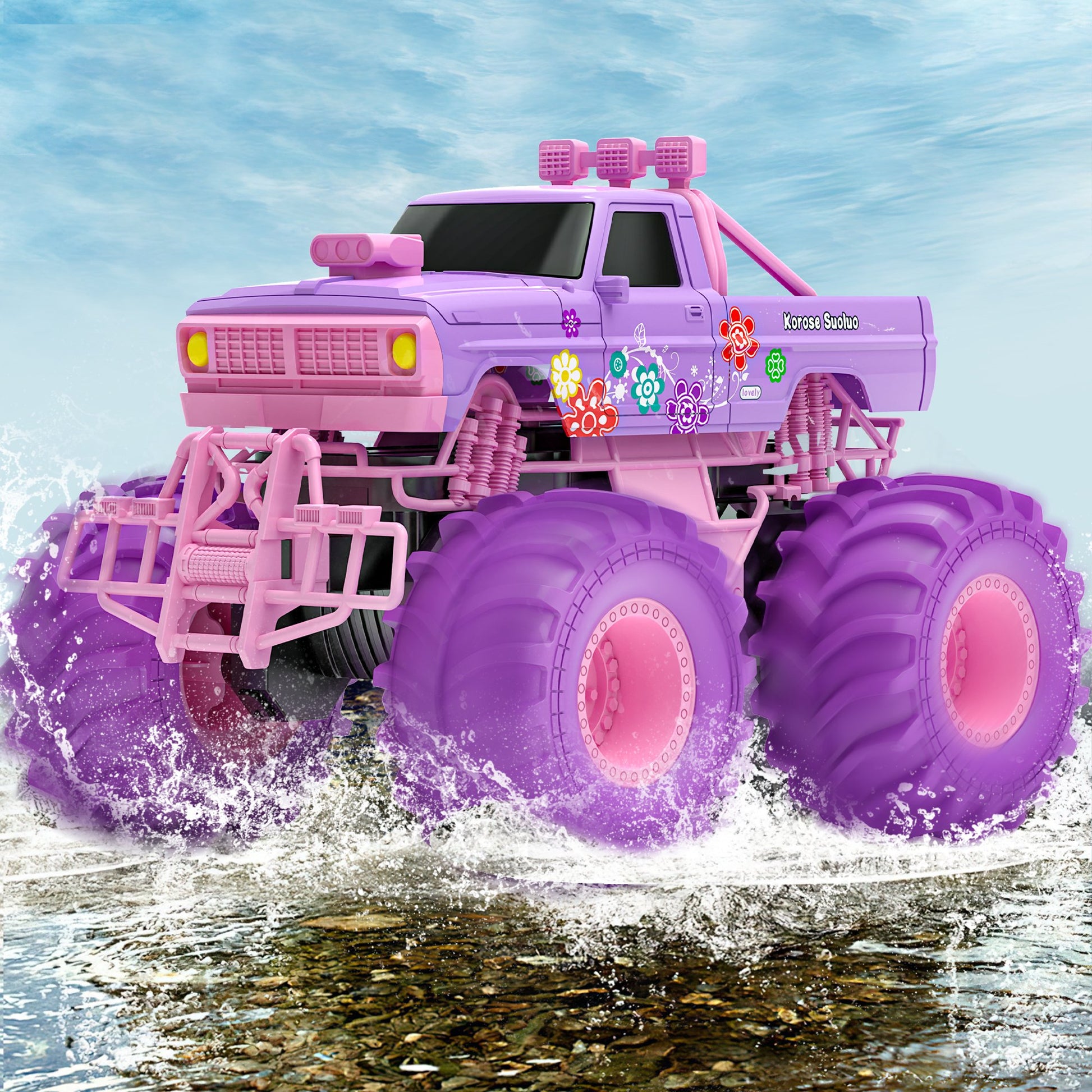 RC Cars for Water Land 1:16 Amphibious Remote Control Cars for Boys Girls 4-7, Waterproof Monster Truck All Terrain Off-Road Pool Toys Remote Control Boat Gifts for Kids (Pink)
