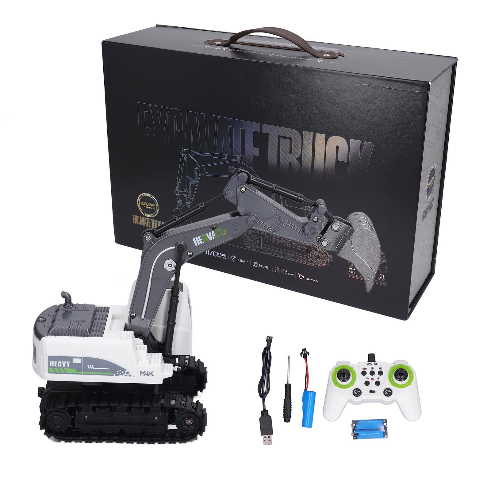 Remote Control Excavator Toys is the perfect gift for children over 3 years old. This multifunctional remote control toy excavator features a realistic cab that can rotate 680 degrees without any direction restriction. Its alloy bucket and powerful engine make it a high-performing toy that can keep children entertained for hours. Realistic lights and sounds, it provides a fun and immersive experience for kids. Rubber tracks allow our toy excavator can be driven on various terrains such as sand, grass, and mud, allowing children to develop their hands-on and independent thinking skills while having fun. Parents can also rest easy knowing that this Radio Control Vehicle has a safety certificate, ensuring that it is safe for children to use. Whether it's for a birthday or Christmas present, the Remote Control Excavator Toys is an excellent choice for children aged 3-12 who are interested in construction and engineering.