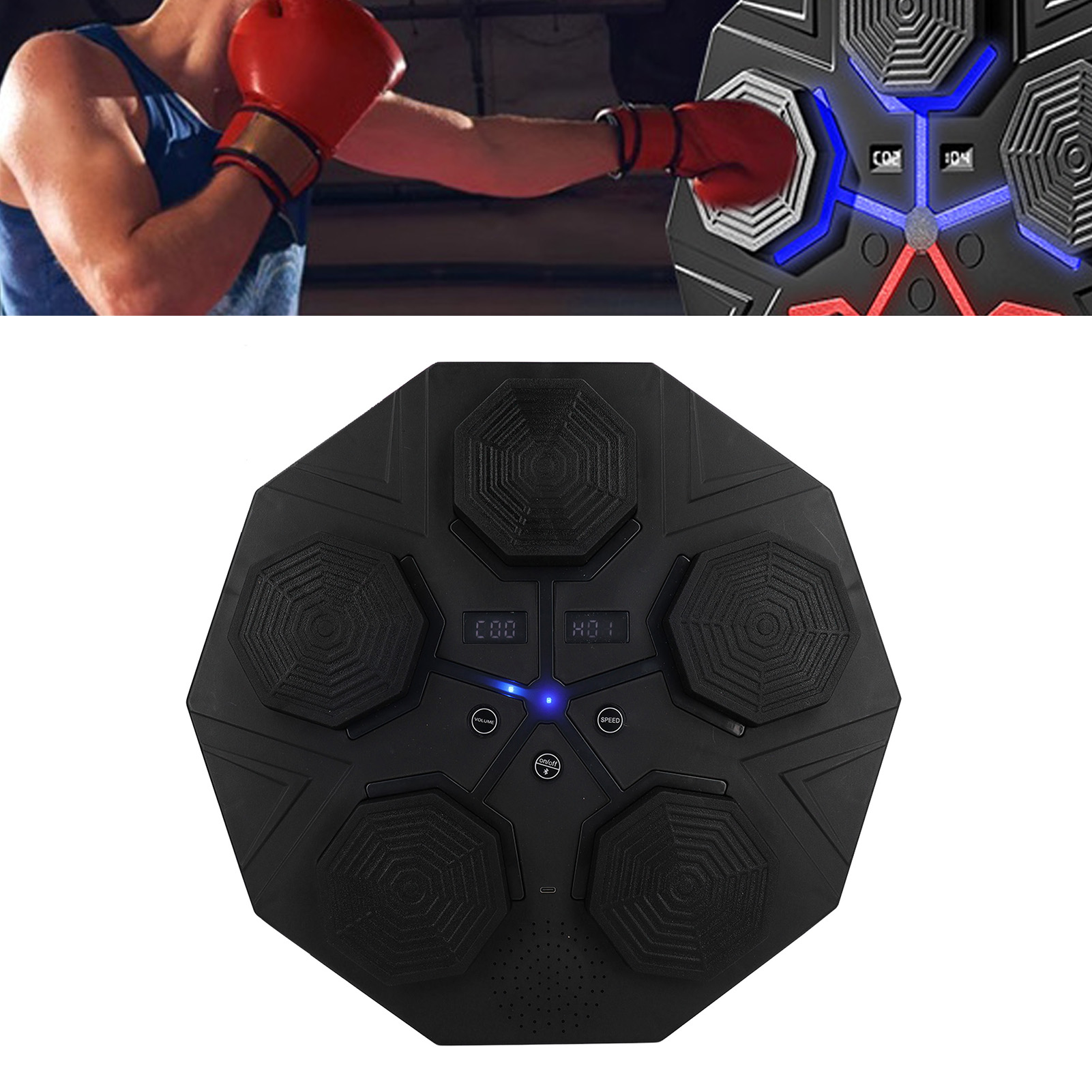 Boxing Wall Target with Boxing Gloves, Smart Display Screen & Bluetooth Connectivity. Bluetooth-compatible audio for instant music streaming and dynamic LED strike points for enhanced reaction training.