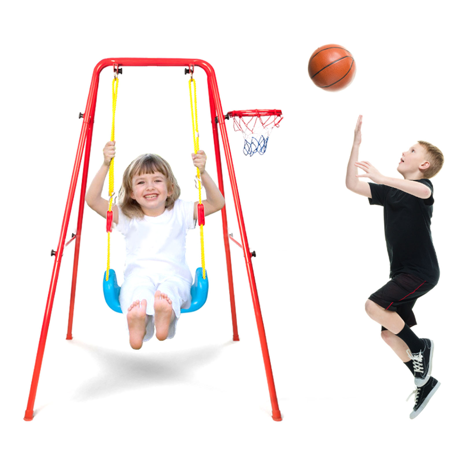 - 2 in 1 Function - The outdoor swing set includes 1 swing and a basketball hoop to meet all the fun requirements. Its many features allow several children aged 3-10 to play simultaneously.